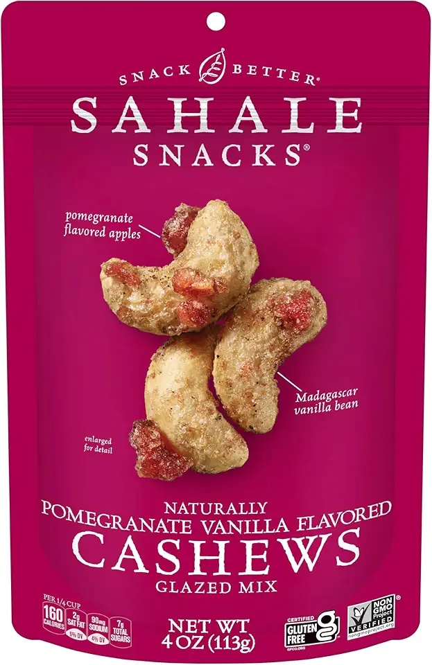 Sahale Snacks 4 oz pouches – 6 packs of dry-roasted deluxe mixed nuts with pomegranate infused apples and Madagascar vanilla. Non-GMO, kosher, and gluten-free. Gourmet flavor in a convenient size.
